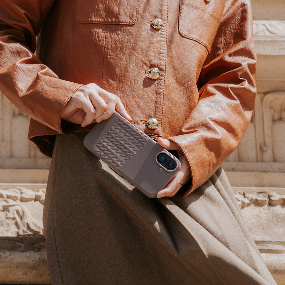 iPhone 16 - Herring 磁吸壓紋皮革手機殼 - 礫石灰