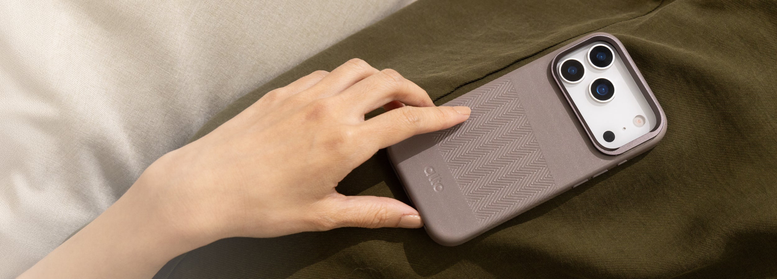 iPhone 16 Pro Max - Herring 磁吸壓紋皮革手機殼 - 礫石灰/迷霧粉