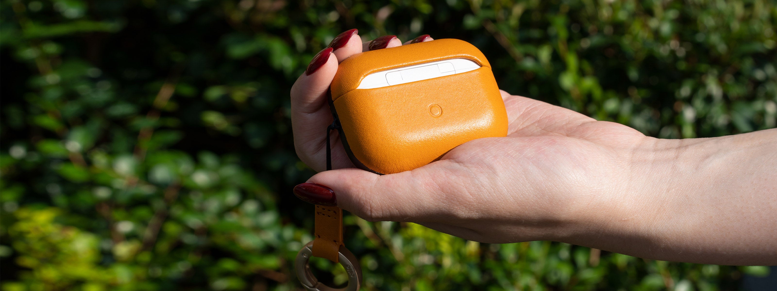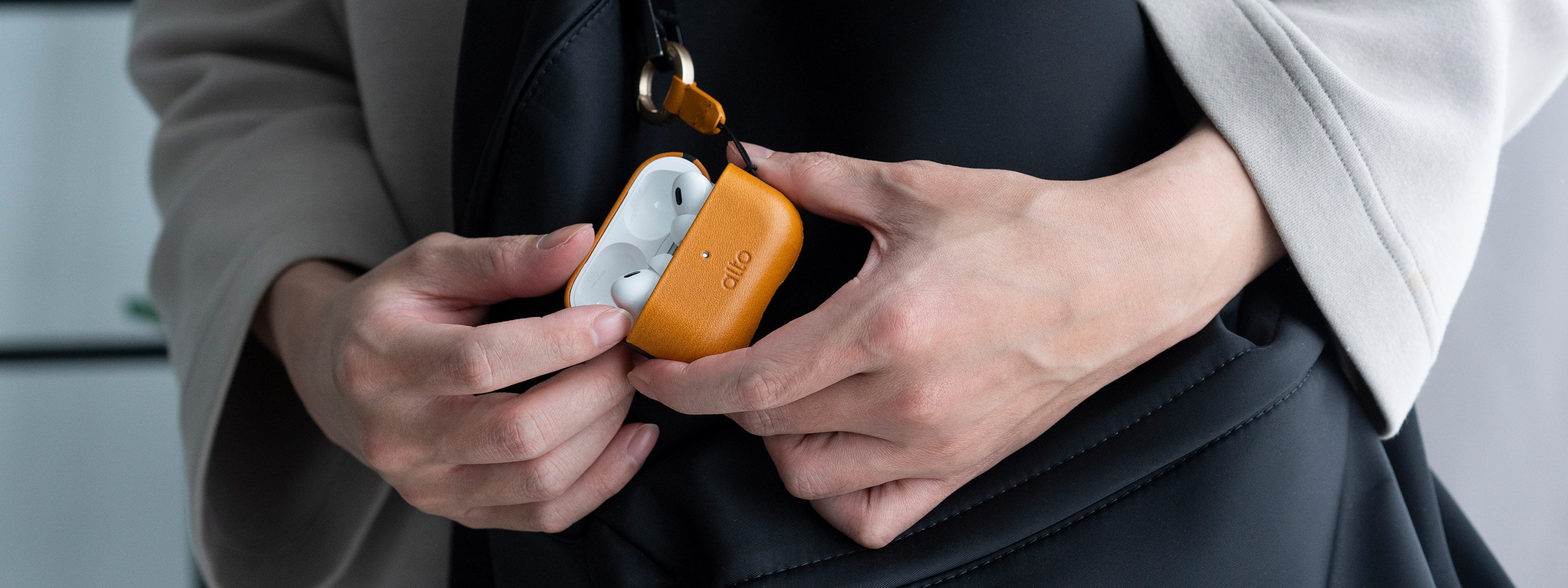 用來自義大利美麗的頭層苯染皮革,為 AirPods Pro 2 帶來優雅風格,輕巧且完整保護。