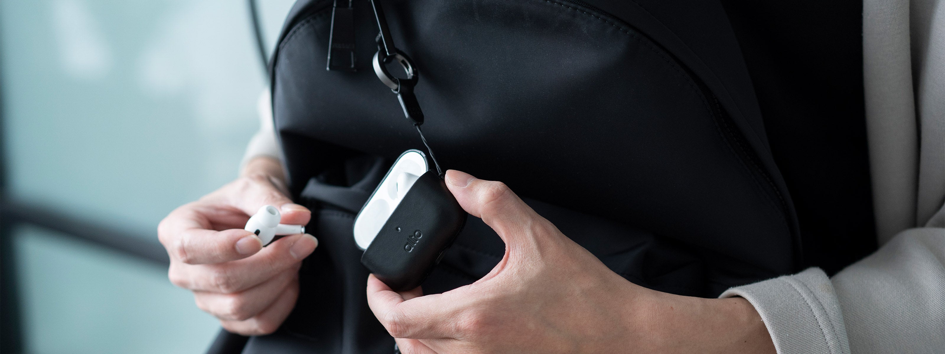 使用扣環將 AirPods Pro 2 隨心所欲勾掛在隨身包包或其它地方上,防止充電盒遺落