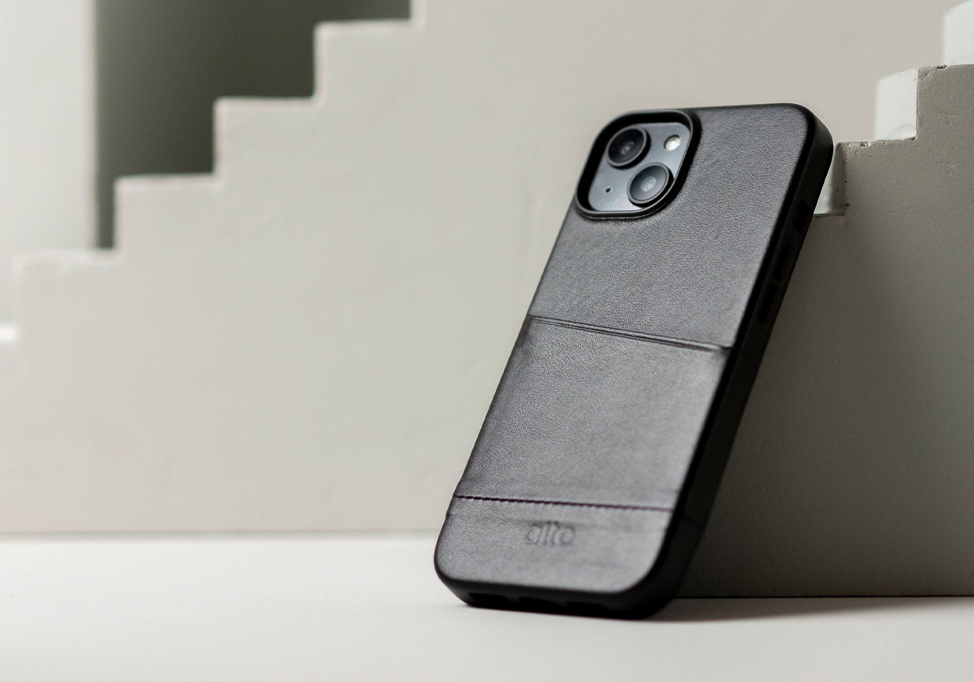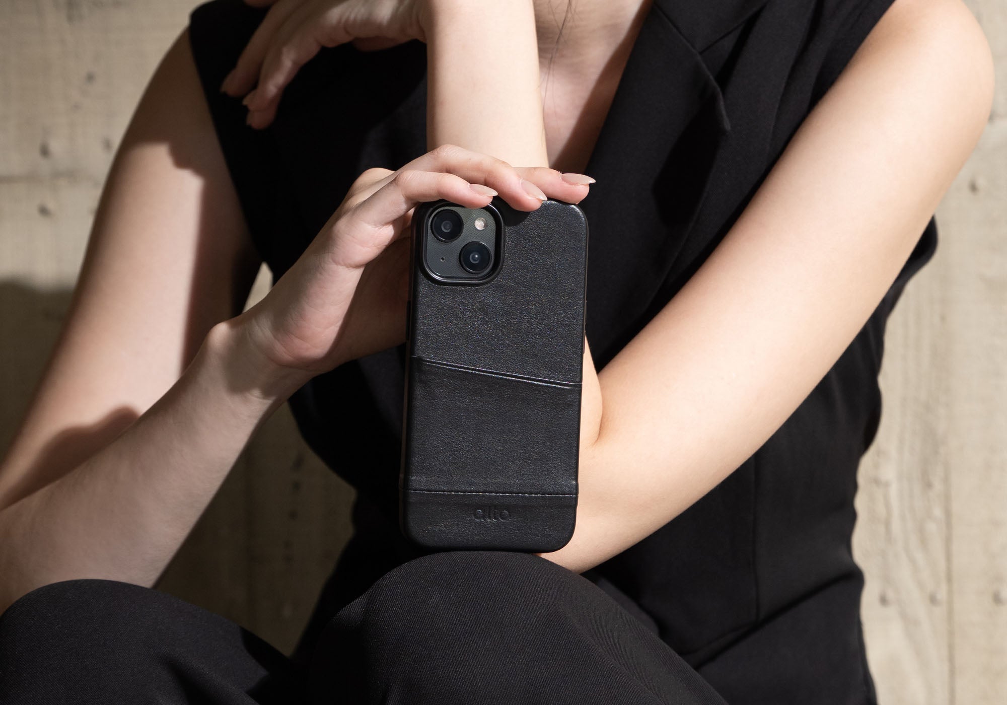 iPhone 14/iPhone 16e - Metro 插卡皮革手機殼 - 渡鴉黑