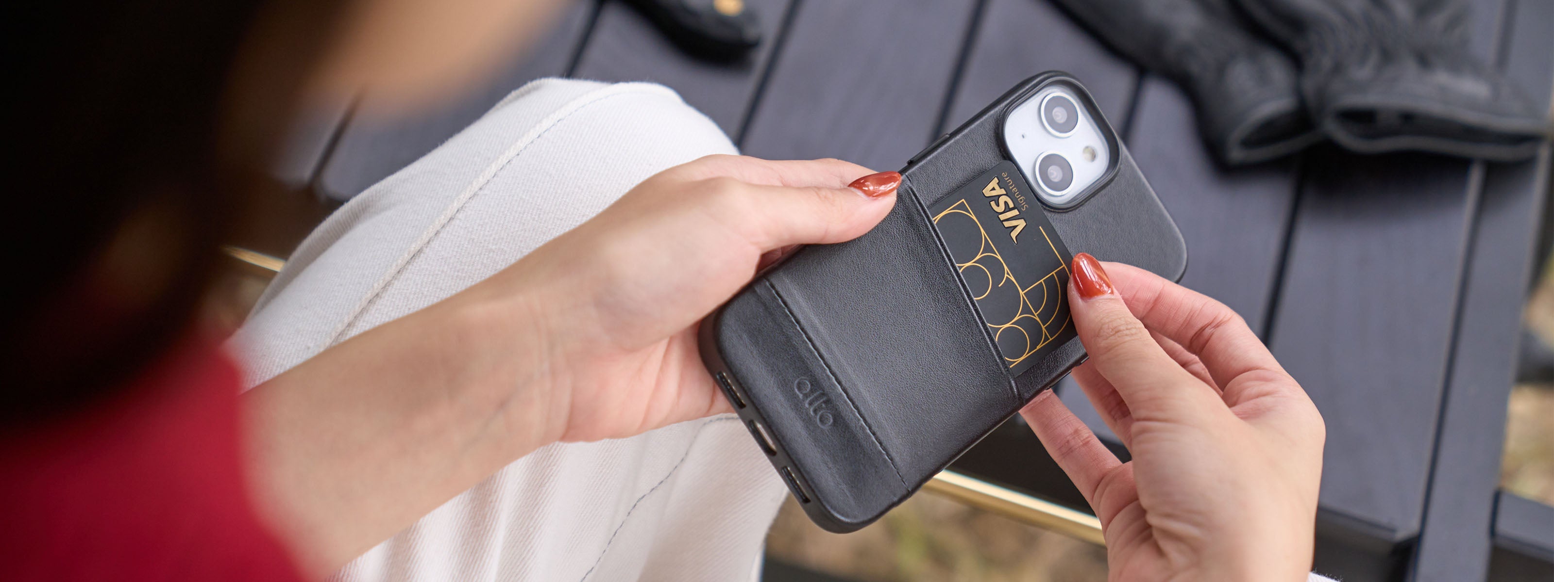 iPhone 插卡式輕薄皮革手機殼,簡潔的口袋設計,收納卡片隨時感應,讓生活簡單優雅。