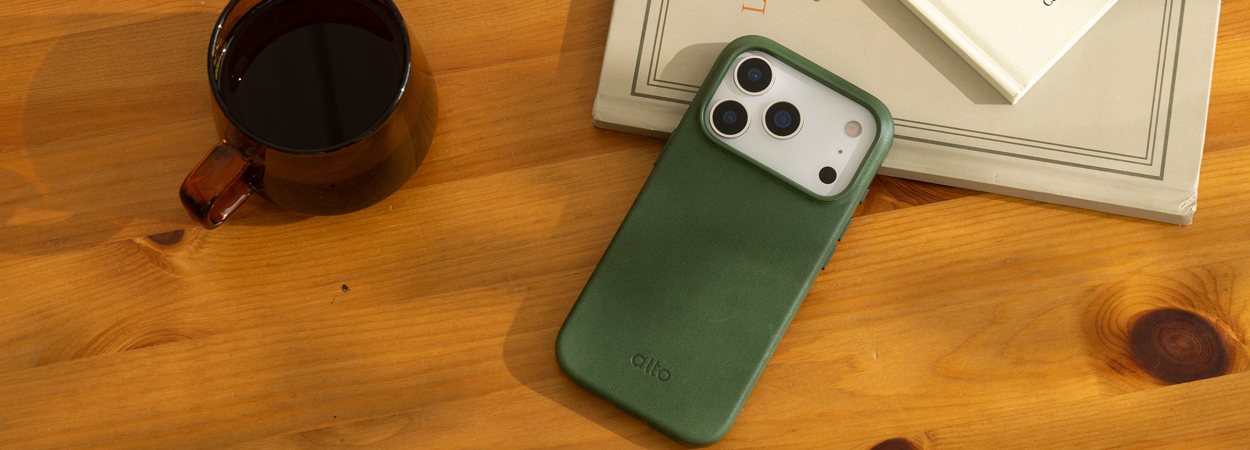 輕薄素雅皮革手機殼,強化支援 MagSafe 磁吸功能,義大利皮革完整細緻包覆,為你的 iPhone 帶來不同感受。