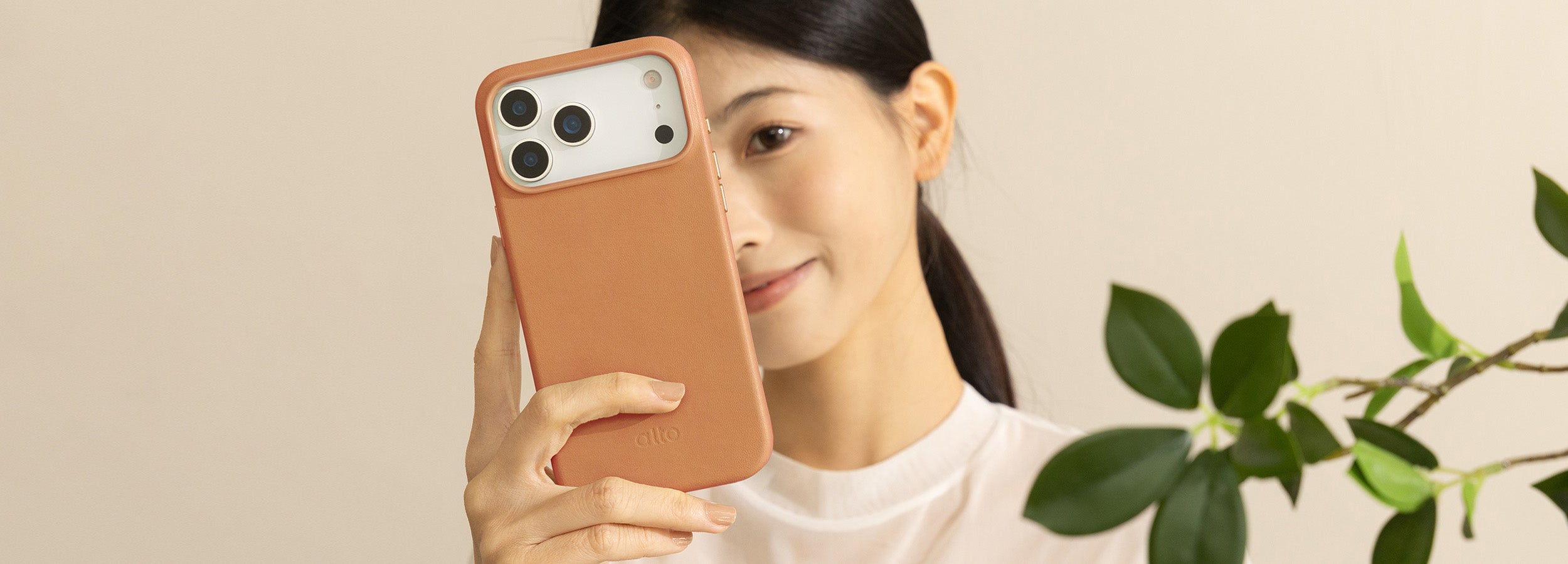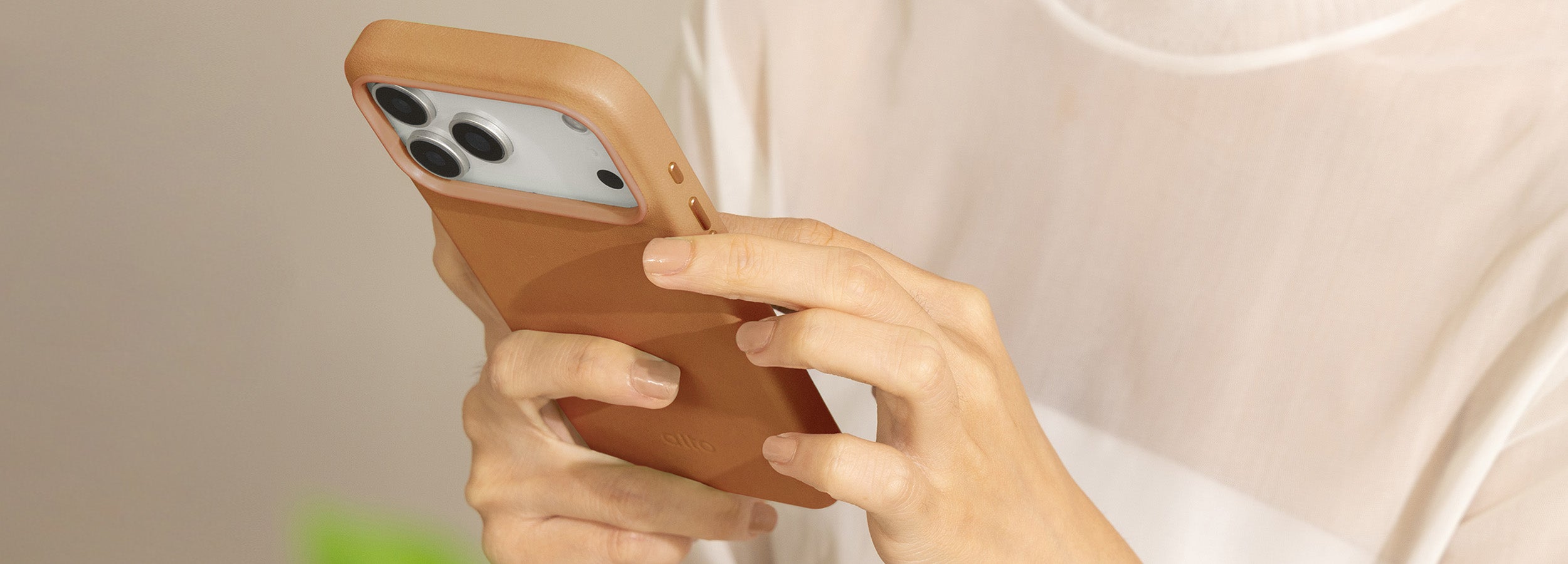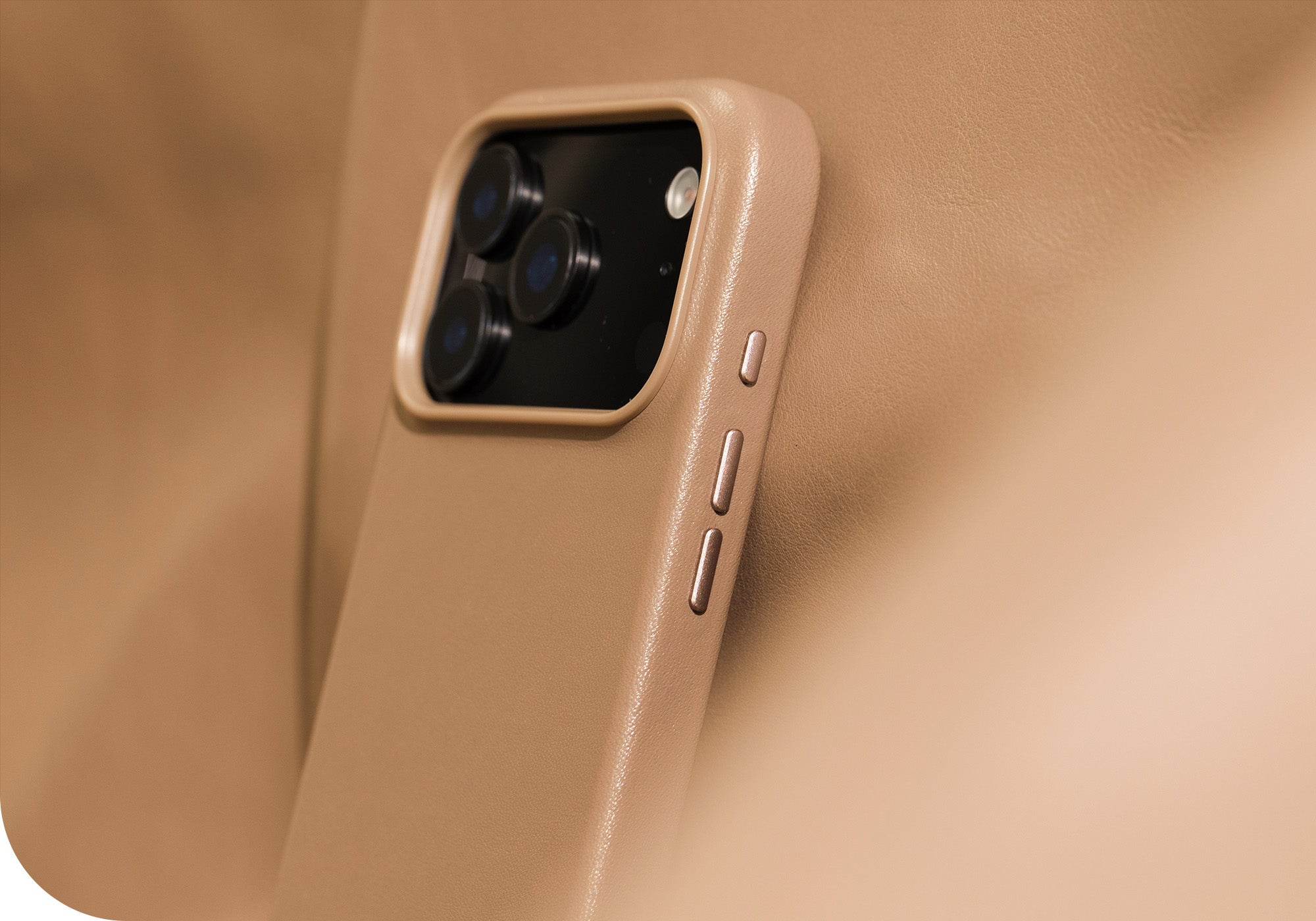 輕薄素雅皮革手機殼,強化支援 MagSafe 磁吸功能,義大利皮革完整細緻包覆,為你的 iPhone 帶來不同感受。