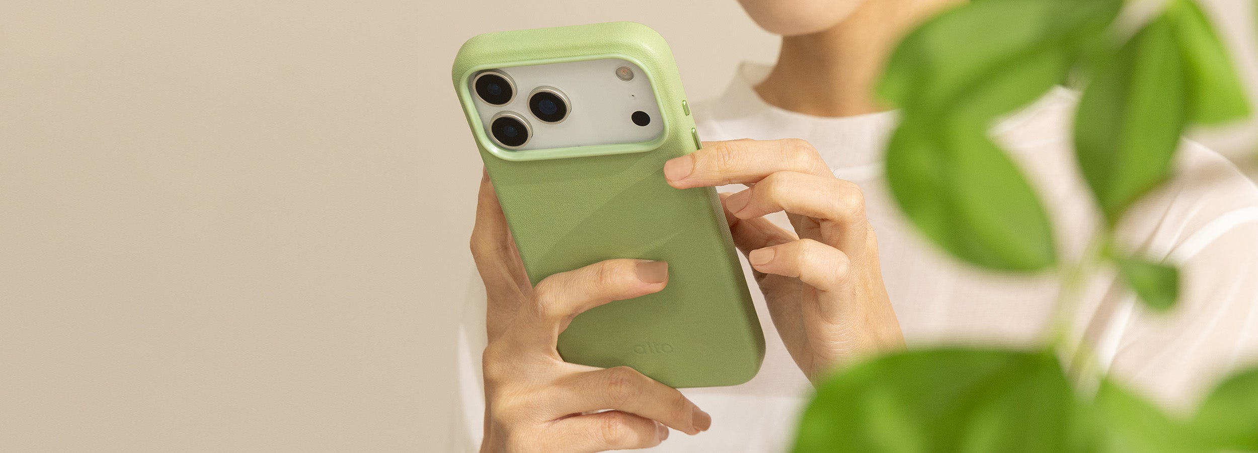 輕薄素雅皮革手機殼,強化支援 MagSafe 磁吸功能,義大利皮革完整細緻包覆,為你的 iPhone 帶來不同感受。