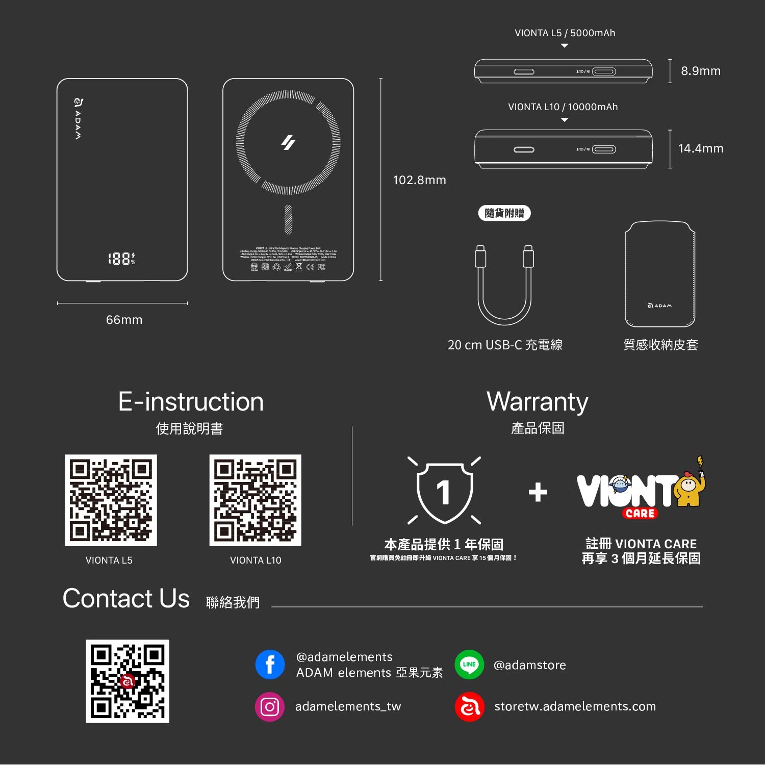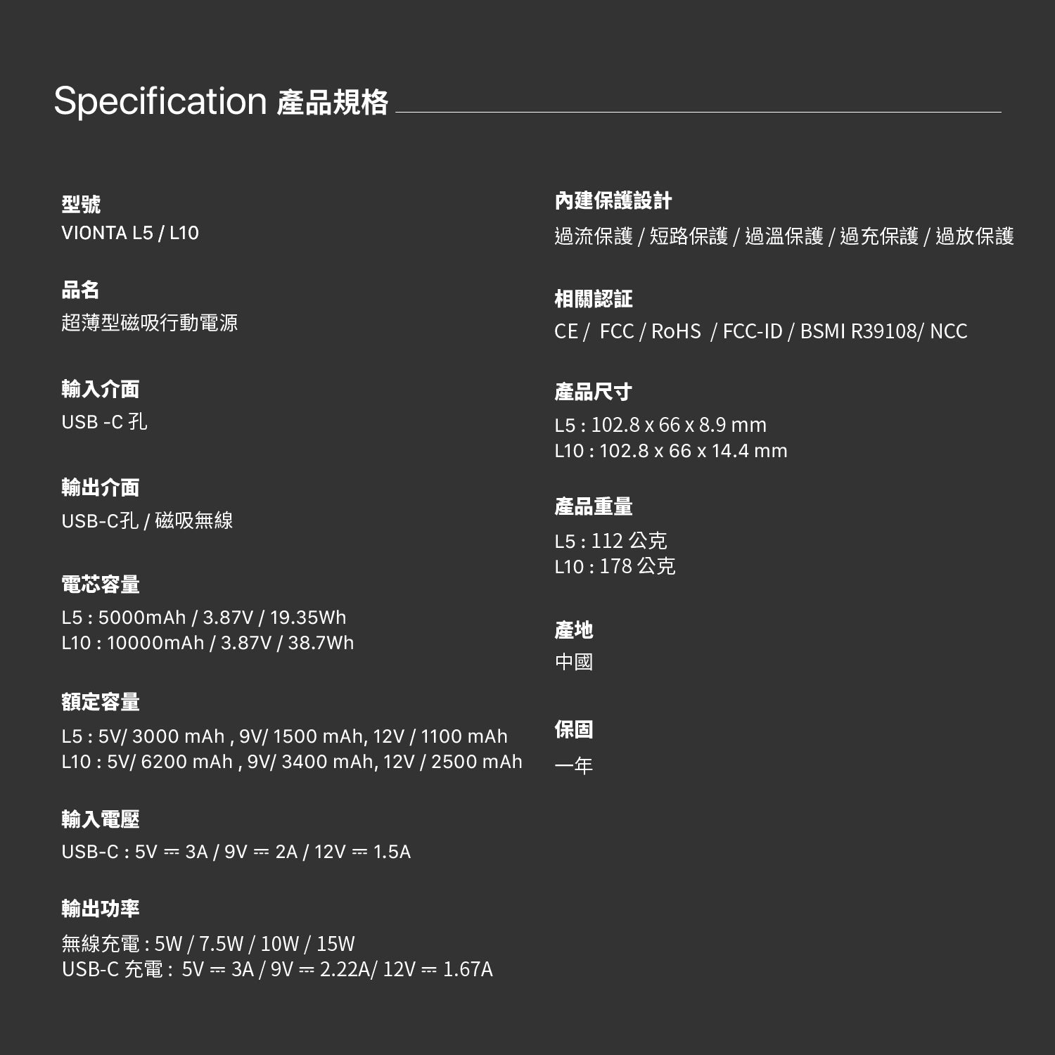 VIONTA L5 超薄型磁吸行動電源 (有標示Wh/可上飛機)